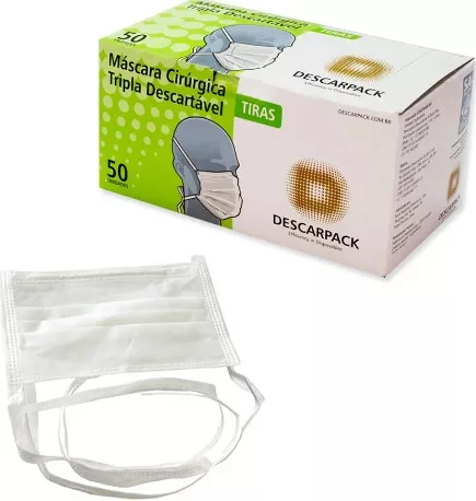 MASCARA CIR TRIPLA DE AMARRAR C/TIRAS C/50 BRANCO DESCARPACK