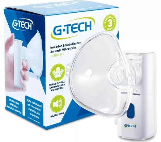 O Inalador e Nebulizador Portátil G-Tech Nebmesh 2 é um modelo de rede vibratória (sistema Mesh), que não usa ultrassom para gerar a névoa. Ele é compacto, silencioso e pode ser usado em diversas posições, o que o torna uma opção prática para viagens e para a nebulização de crianças, inclusive enquanto dormem.