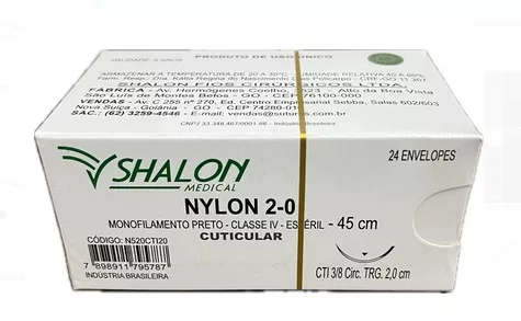 NYLON PRETO 2-0 45CM 3/8 C/AG.2,0 CT SHALON N520CTI20