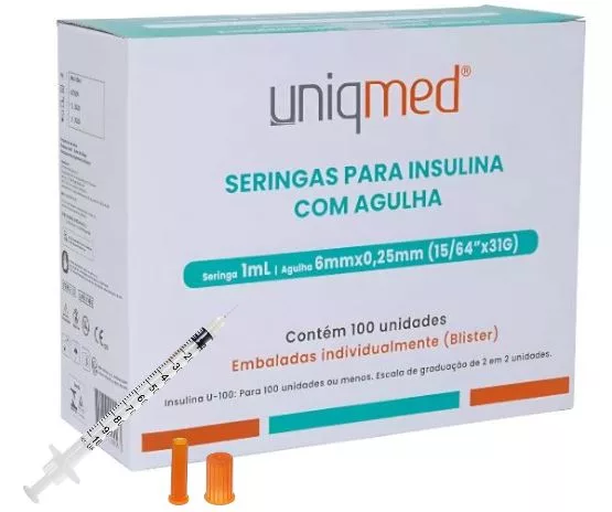 SERINGA 01ML C/AG 6X25MM 31G BLISTER UNIQMED ST
