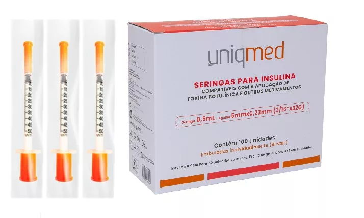 SERINGA 0,5ML C/AG 5X23MM 32G BLISTER UNIQMED